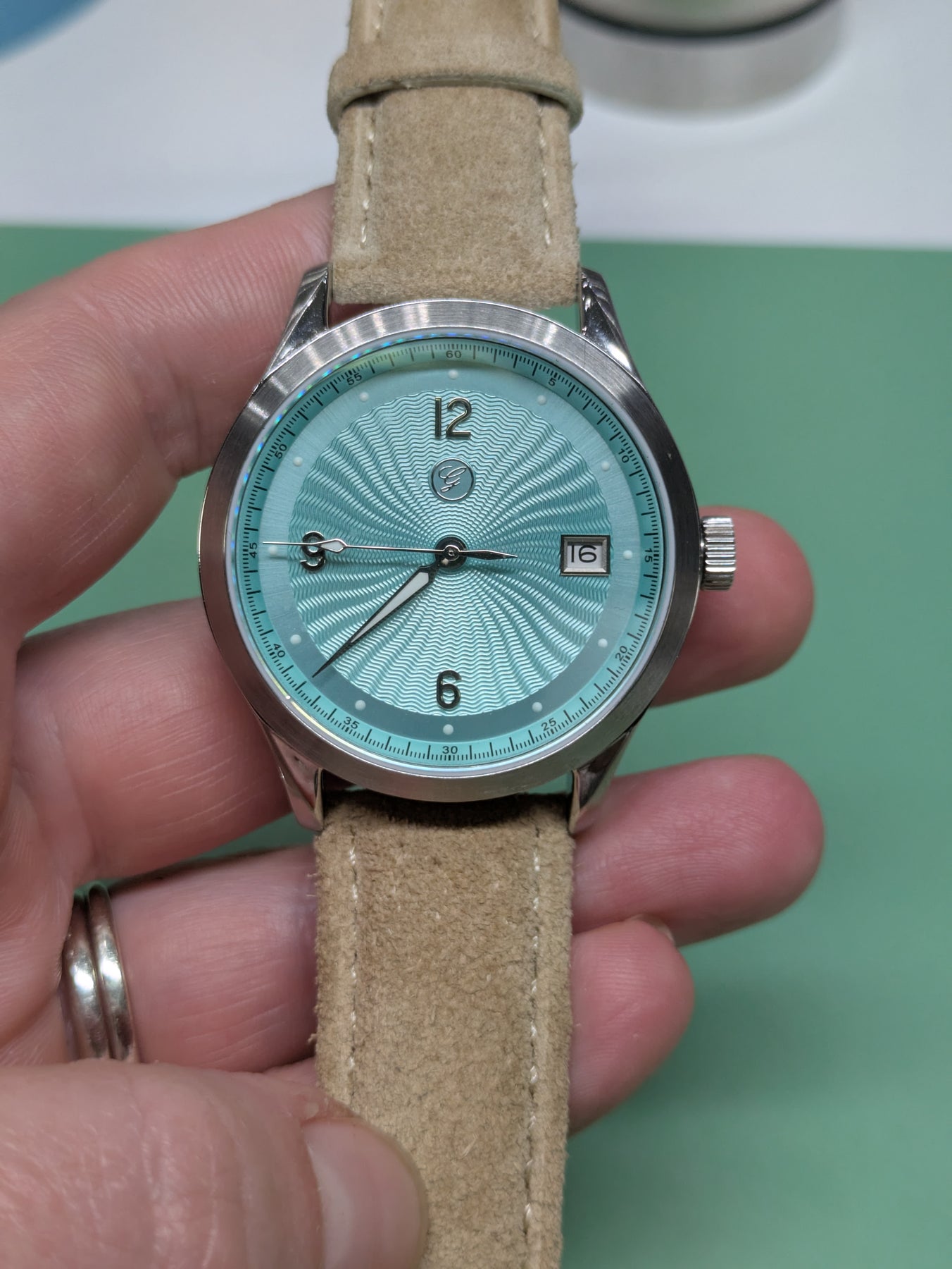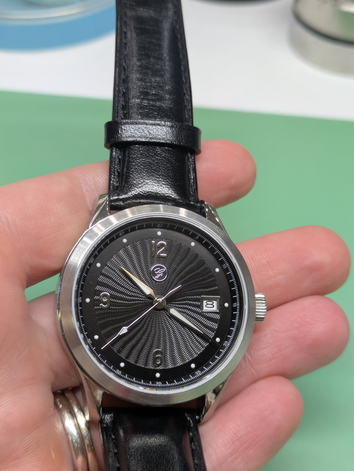 Galvin Watch Company's second collection, Loimu, features a date window with an automatic movement. Designed by industry accredited watchmaker, Susan Galvin, the collection pays homage to her northern Finnish heritage. The guilloché-style dials honours the blazing aurora borealis of the northern night sky.